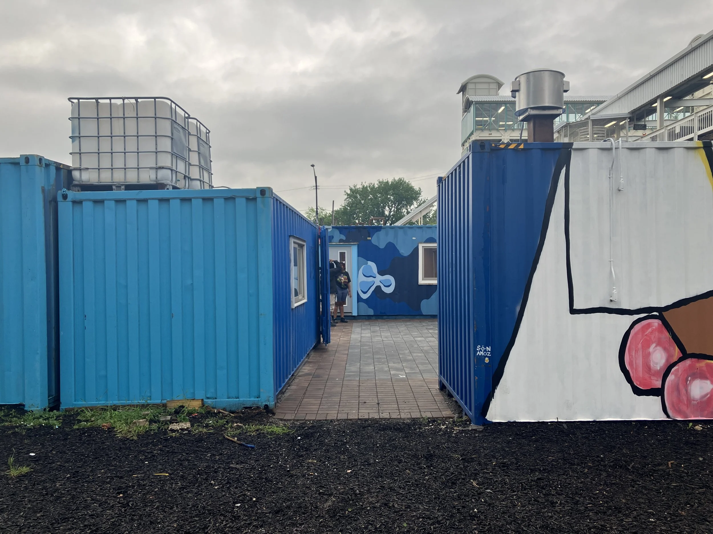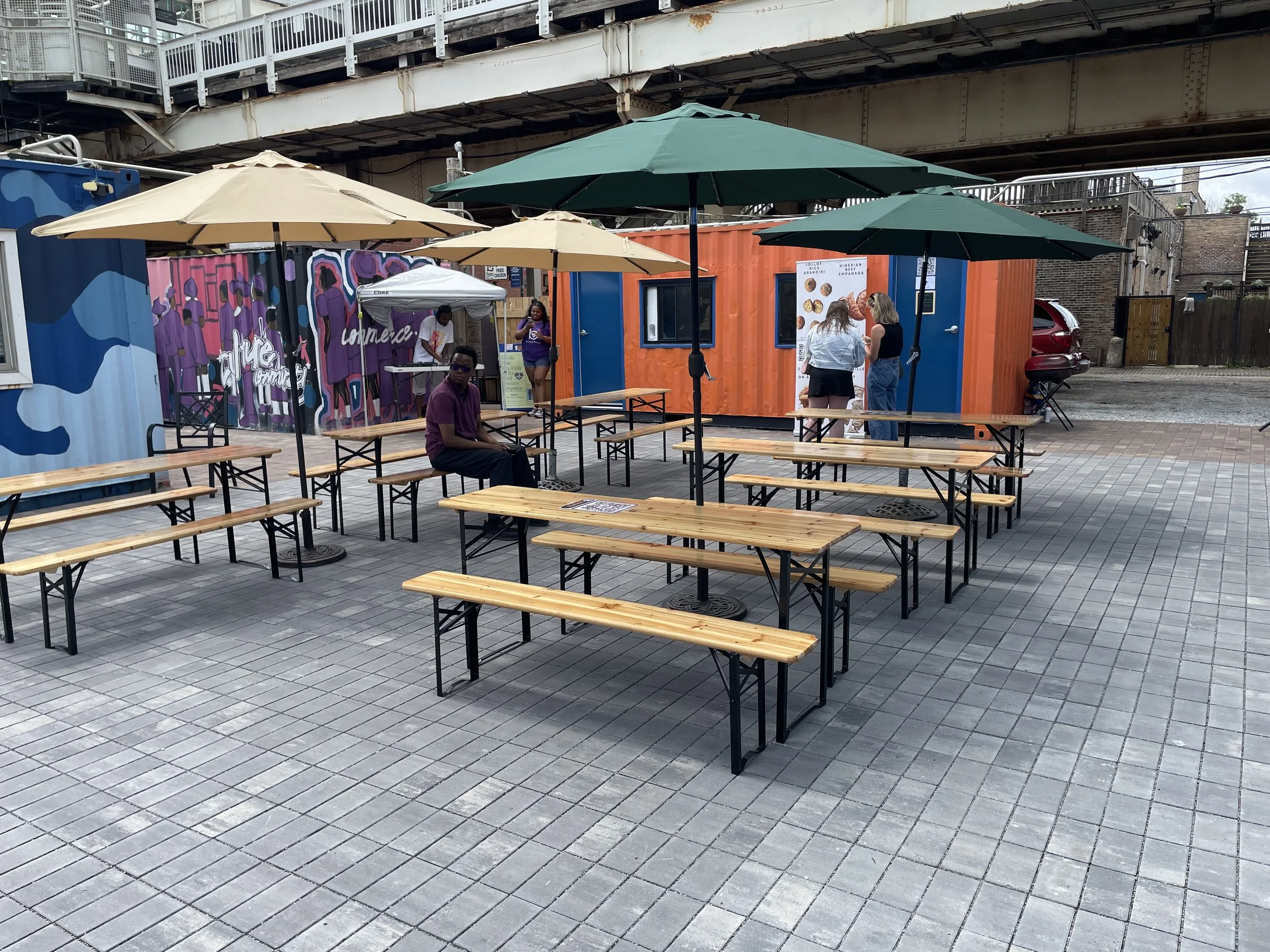 Boxville Marketplace is a campus for small businesses in Bronzeville, Chicago built out of shipping containers. For The Available City’s 18 of a Kind Project, the design team FLYHALF (Adam Maserow and Isabel Strauss) was asked to design portable performance spaces for the campus and to envision the near-future of Boxville’s site. To kick off the design process, FLYHALF worked closely with the Boxville team and The Available City to define a series of design interventions which allow for gathering, playing, and dining throughout the campus.